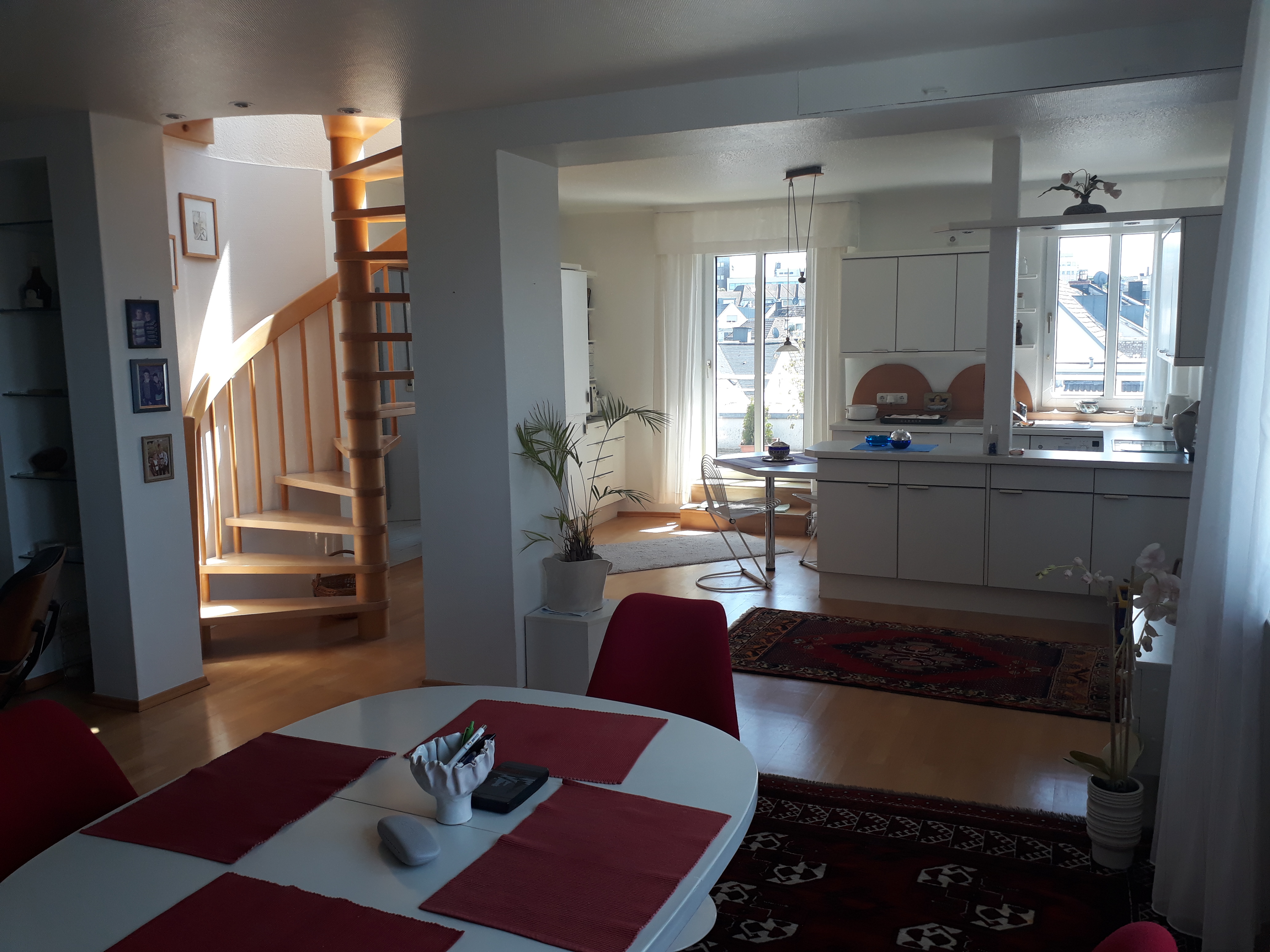 Ca. 400 m vom Sternplatz entfernt liegende Maisonetteeigentumswohnung mit Aussicht auf die Innenstadt und die westlichen Stadtteile bis nach Halver. Vom Tiefgaragenstellplatz gelangen Sie bequem mit dem Aufzug in das zweite Obergeschoss. Von dort aus ist die Wohnung über nur eine Treppe zu erreichen. Die Wohn – und Schlafräume verteilen sich auf zwei Wohnebenen die durch eine massive Buchenholztreppe (Spindeltreppe) verbunden sind. Das Büro in der unteren Wohnebene könnte auch als kleines Kinderzimmer dienen. Aufgrund der Aufteilung ist diese Wohnung jedoch zu zweit am besten zu bewohnen.